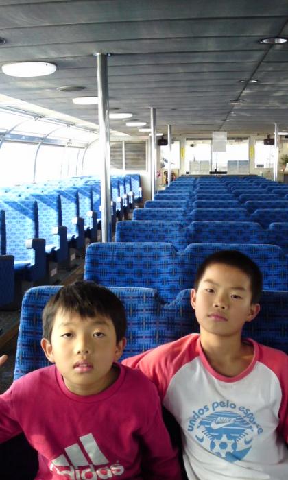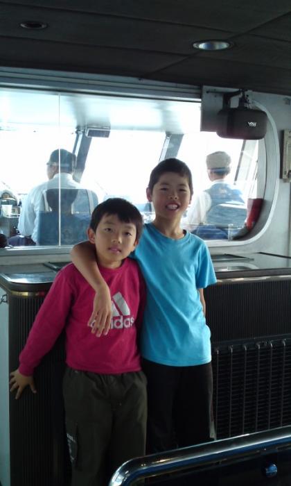 定刻に水上バスが出発しました。葛西臨海公園まで行きます。貸切状態です。