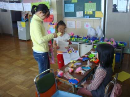 12月10日(金)3・4時間目にお楽しみ会がありました。写真は2年生の花びら・花たば・花1本・花のアルバムのお店です。