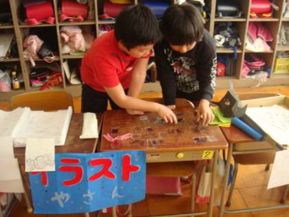 12月10日(金)3・4時間目にお楽しみ会がありました。写真は4年生のぬりえ・マフラー・プラバン・写真立て・マグネットねんどなどのお店です。