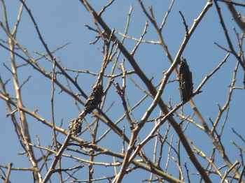 ☆幼虫はかれ葉やかれ枝を使い、糸をだしてつなぎ合わせ、袋のような(これが蓑ににてる)巣を作って枝からぶらぶらとぶらさがっています。袋の中はあたたかいのでしょうね。