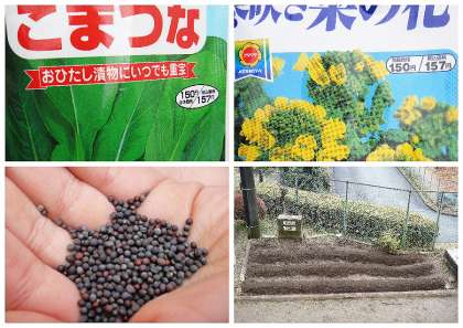今日、雨があがったので4年生が花壇に種まきをしていました。こまつなと菜の花(アブラナ)の種をまいていました。