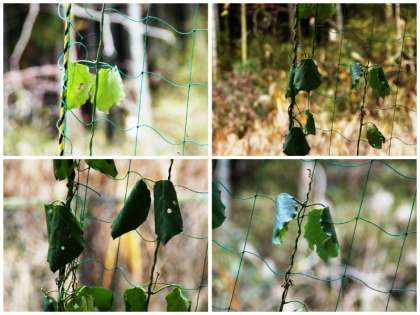 連日の暖かさのためか、キジョラン(鬼女蘭)の、アサギマダラの幼虫が大きくなり、約3センチメートルぐらいに成長していました。
