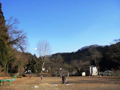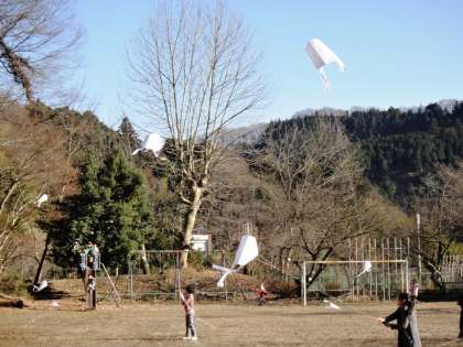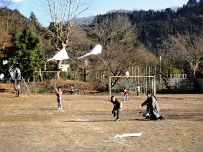 2年生が自作のタコあげていました。糸がからんでしまた子もいました。とても良い風が吹いていました。冷たかったですが。