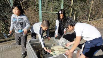 今日も飼育栽培委員会の子ども達と学校の木々に「肥料まき」をしました。今日は「栗の木」のまわりにたくさんの肥料をまきました。