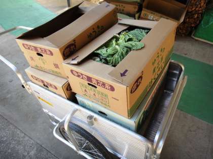 今日は、午前中に会議があり、昼前に恩二小に行きました。途中、エコス・たいらやさんでは、恩方第一小学校の校長先生に手伝っていただいて、「キャベツの箱」を車に積みました。全部で7箱ありました。