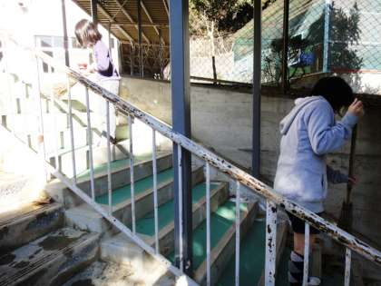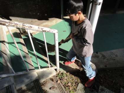 その後、小屋の水洗いには、6年生のF君と5年生のK君が来てくれました。(自分でみつけた活動を自主的にしました。)