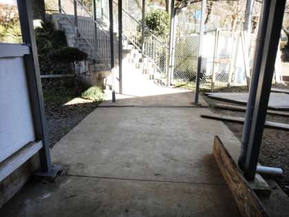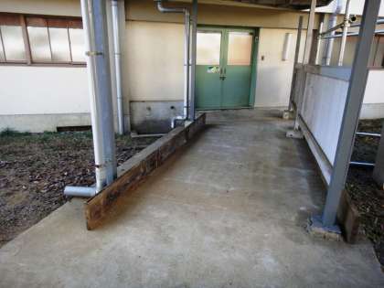体育館への通路にコンクリートを打つための「枠作り」を用務主事さんがやってくれました。明日21日にミキサー車が来る予定です。