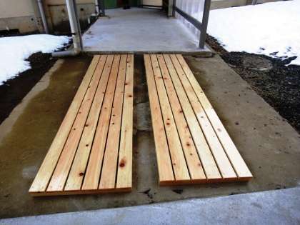 体育館への渡り廊下を用務主事さんが作ってくれました。きれいな「ニス」も塗ってくれました。