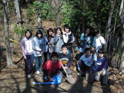 2月22日(火)4時間目に宇宙けやきを6年生で、卒業の記念樹として校庭裏に植えました。みんなで協力して穴を掘り、けやきを2本植えました。