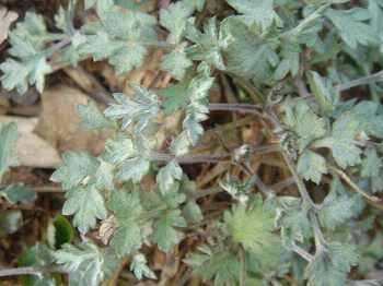☆この毛にはロウをたくさんふくんでいるそうで、水をはじくようになっています。この葉のうらの毛を集めたものがお灸(きゅう)に使うもぐさです。ヨモギの名前は、「よくもえる木」からつけられたそうです。
