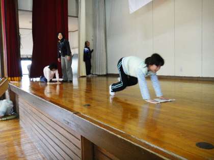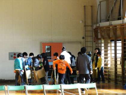 今日の6校時に、3〜5年生が卒業式の会場作りをしました。体育館の清掃と、イス並べ、楽器運びと大変よく働いてくれました。