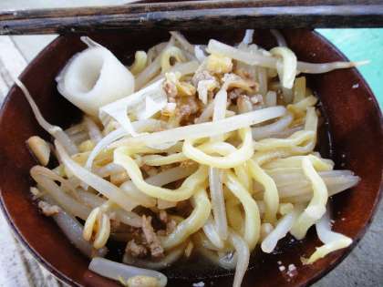 すぐに食べてみると、なかなかの味でした。カツオのダシと挽肉で、とても良い味がしました。(給食室から味噌ラーメンのダシの取り方を聞いた結果のようです。)