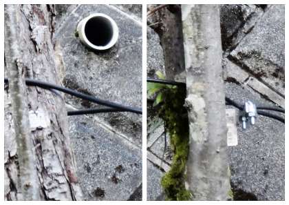 用務主事さんが、やぎの二郎君を外につなぐための「ワイヤー」を数カ所に張ってくれました。 頑丈に固定してくれました。