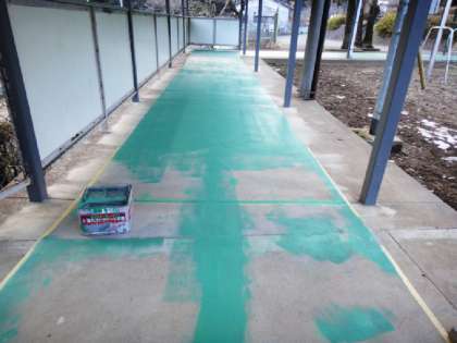 渡り廊下のペンキ塗り