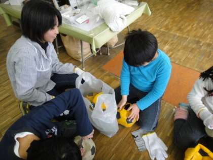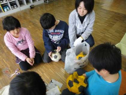 今日も「大掃除週間」でした。昇降口のグループは、清掃の後、破れたボールの廃棄をしていました。