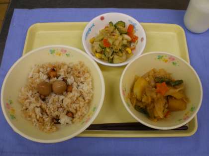 田んぼに植えた稲の苗が「たこ」の足のように大地にしっかりと根がはり、たくさん収穫できるようにと願って、今日の給食では『たこめし』を食べました。