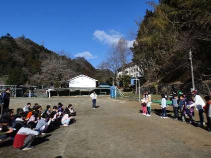 杉の花粉が多かったのですが、校庭で「ゲーム集会」をしました。