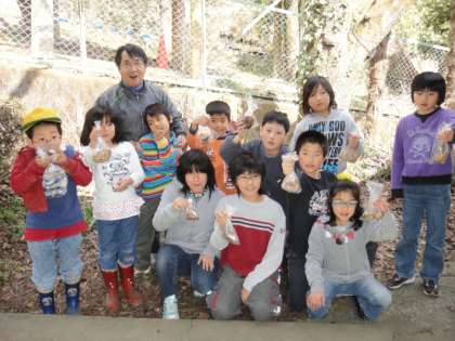 シイタケを飼育栽培委員会の子ども達にあげました。