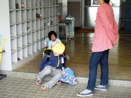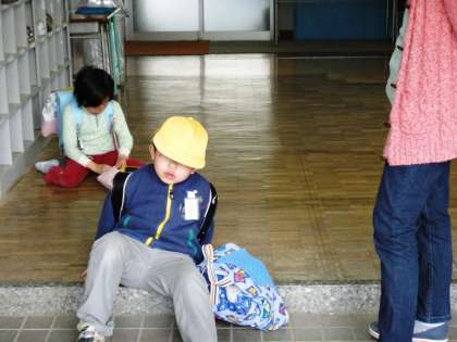 今日も1年生が3校時で下校しました。10分ぐらい前に玄関に集まってきました。