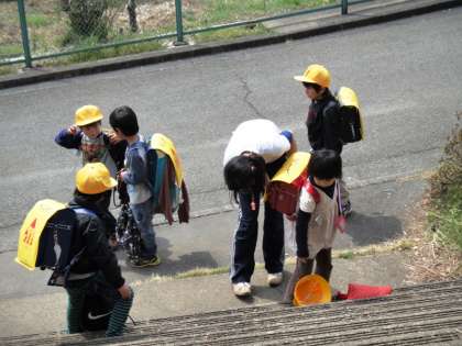 今日も1年生が3校時で下校しました。10分ぐらい前に玄関に集まってきました。