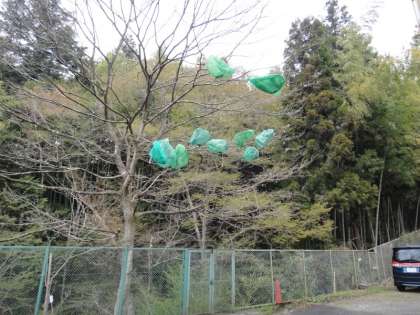 朝、学校に着くと、緑色のネットがたくさんありました。