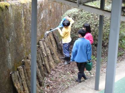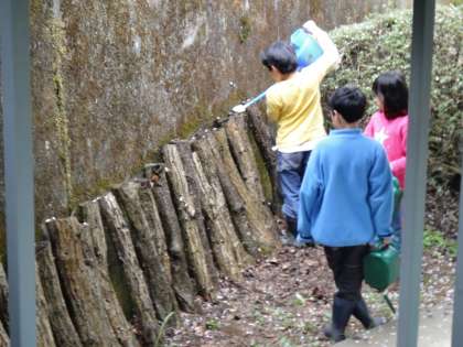 段ボールつぶし、エサの段ボール運び(12箱)、シイタケの水やり、ヤギ小屋のまわりの掃除と、びっくりするくらい働いてくれました。