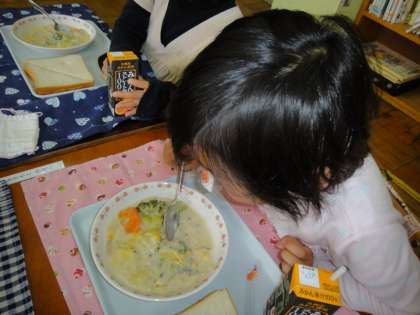 『すげぇー、うめぇー』と話している子もいました。シチューがおいしかったようです。