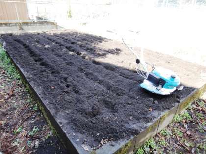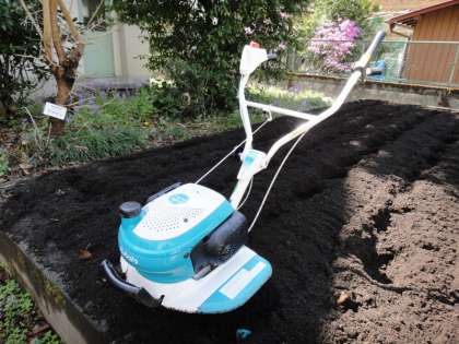 今日は朝から耕耘機を使って畑を耕しました。プールの前の畑と、校舎前の畑を耕しました。4年生の「ヘチマの棚」の移動もしました。