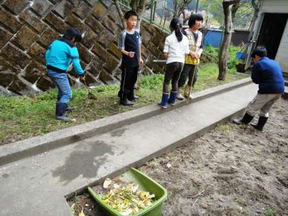 今日は水曜日なので飼育・栽培委員会がありました。子どもたちは、今日もとてもよく働いてくれました。やぎの「二郎君」を朝から日なたぼっこをさせていましたが、委員会の最後には小屋に入ってもらいました。