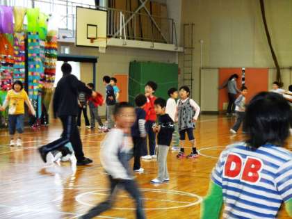 今日の朝会は「よもぎ摘み集会」の予定でしたが、下草が雨で濡れていたので、「ゲーム集会」に変更しました。そして、2回「手つなぎ鬼」をしました。2回目は6年生が「鬼」になったのですが、大変よく走り回っていました。