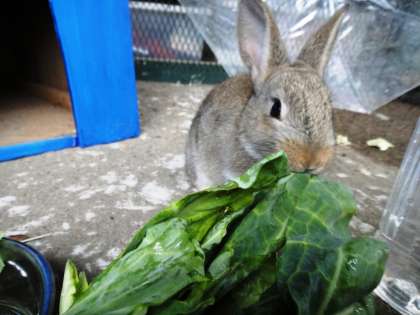 小雨の一日でしたが、昨日あげていた「レタス」と「ニンジン」を全部食べていましたので、新しく「キャベツ」と「牧草」と「水」をあげました。