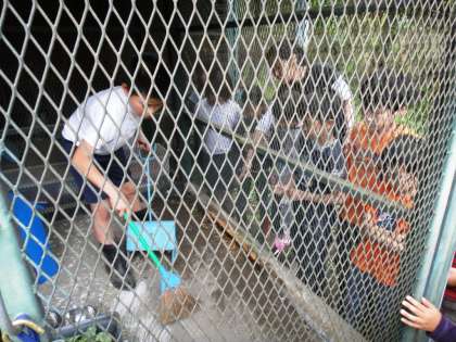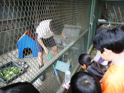 金曜日、飼育栽培委員会がありました。初めてウサギの世話をするので、みんなで確認しながら、エサ切り、掃除等をしました。