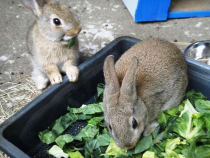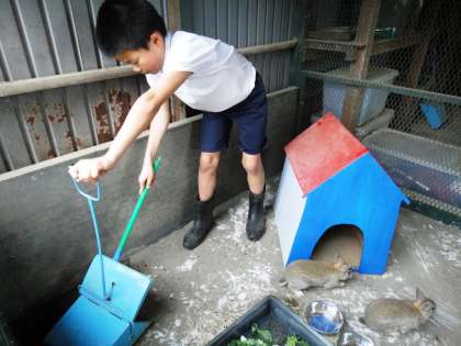 金曜日、飼育栽培委員会がありました。初めてウサギの世話をするので、みんなで確認しながら、エサ切り、掃除等をしました。
