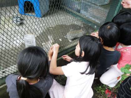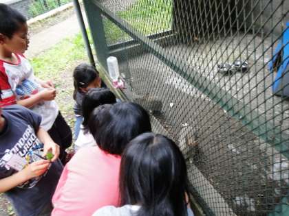 放課後にバスの時刻まで20分間もあったので、たくさんの子どもたちがウサギにクローバーをあけるために集まってきていました。
