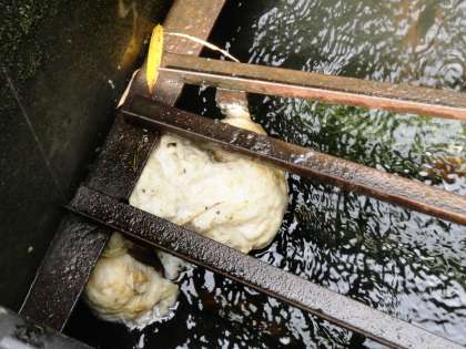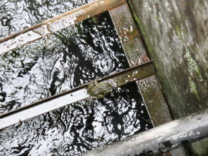 校舎の裏の浄化槽にモリアオガエルが10匹位やって来て、卵を産んでいました。ヒキガエルも7〜8匹来ていました。