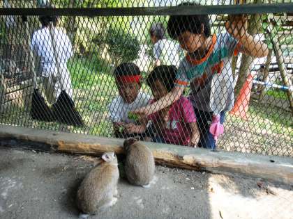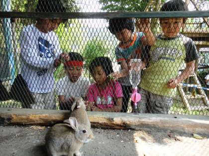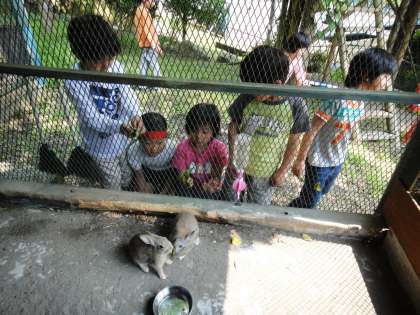 昼休み、1年生がうさぎさんにクローバーや草あげてくれました。