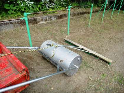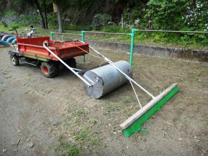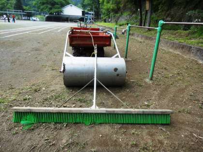 今日も午後から校庭の整備をしました。バタバタにローラーとブラシをつないで、引っ張りました。