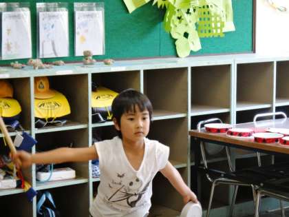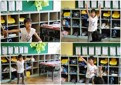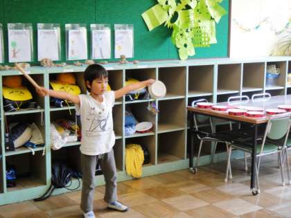 午後から「エイサー」の曲が聞こえてきました。1年生が教室で「発表会」をしていました。