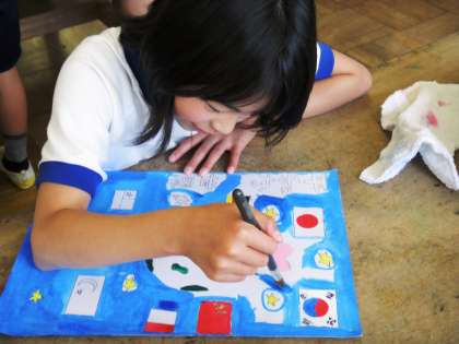 図・工の作品の仕上げ。昼休みに図工室で作業をしていました。