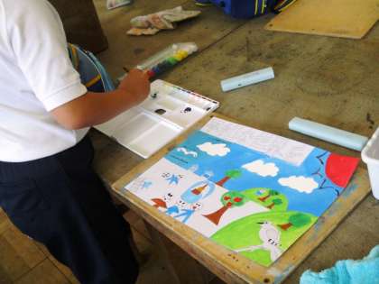 図・工の作品の仕上げ。昼休みに図工室で作業をしていました。