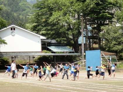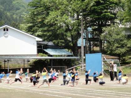 4〜6年生「リズム」と「組み体操」の練習をしていました。