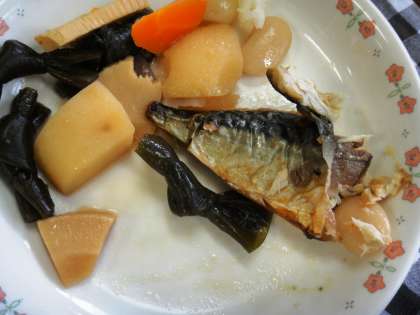 26日、今日の給食は「きびご飯」「サバの塩焼き」「野菜のうま煮」「白インゲンの甘煮」「牛乳」でした。