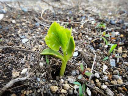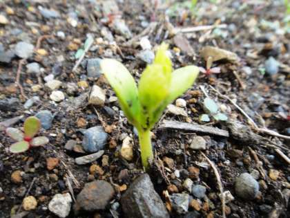 なかなか出てこなかったニガウリの芽が出てきました。これから「緑のカーテン」にまで仕上げられたらいいのですが。