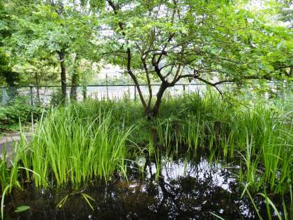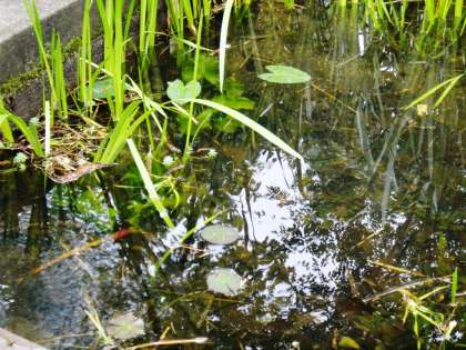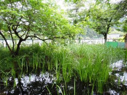 中休みに、ビオトープ(旧プール)で、モリアオガエルの鳴き声がしていました。