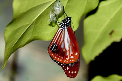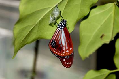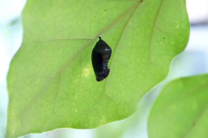 3年教室のアサギマダラのサナギが朝、黒くなっていましたが、中休みには羽化しました。