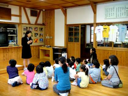 1〜2年生は視聴覚室でビデオを試聴してから交通安全のお話を聞きました。
