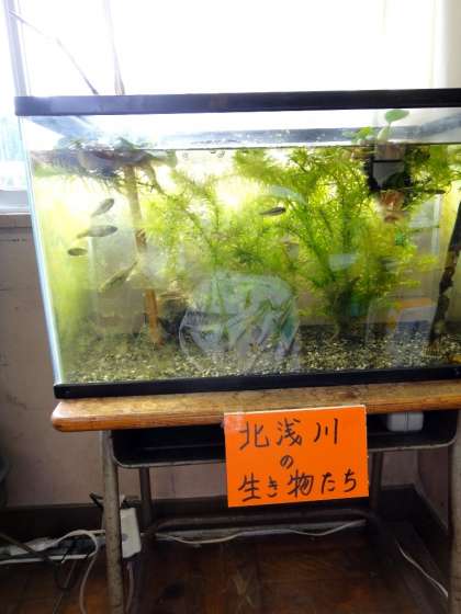 3年教室は賑やかです。川魚やオタマジャクシ、蝶の幼虫、カブトムシの幼虫…、等がいました。