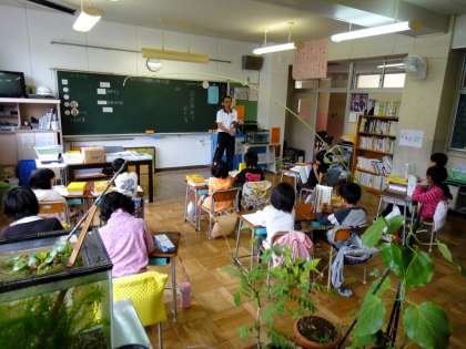 3年教室は賑やかです。川魚やオタマジャクシ、蝶の幼虫、カブトムシの幼虫…、等がいました。