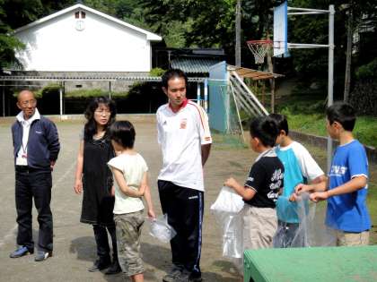 9日(木)は「ヨモギ摘み集会」がありました。全校児童で冬の「餅つき会」の時に使う「ヨモギ」の新芽を摘みました。