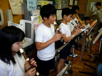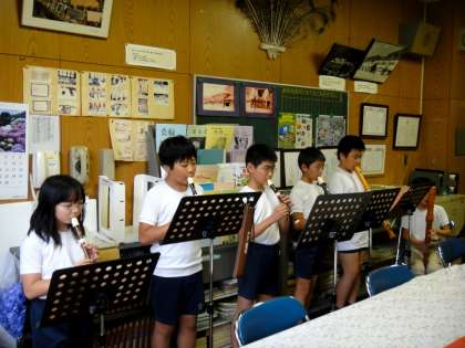 6年生が給食の前に、「出張演奏会」のために会議室にきてくれました。